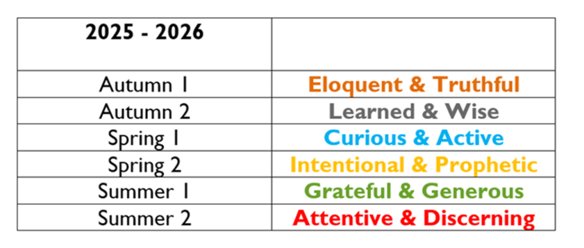 Virtues table for academic year 2025 - 2026