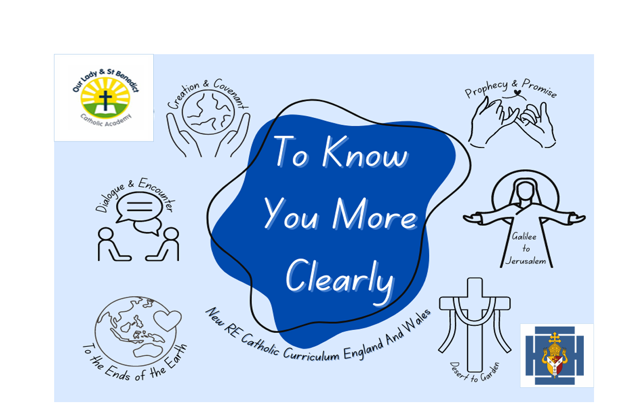 From the Spring Term 25 - Spring Term 26 Our Lady and Saint Benedict Catholic Academy has been chosen to work alongside the Diocese and take part in the Trial of the New RE Curriculum (RED). During this time, we will be working closely with the Diocese to ensure that the New RE Curriculum supports the Teaching and Learning of RE across all Year Groups and is progressive and meets the needs of all learners. The new RE curriculum is entitled 'To Know you More Clearly'. It consists of 6 branches which are spread out over the academic year. Due to the release of the branches the children will be learning about the Liturgical Year out of sequence.